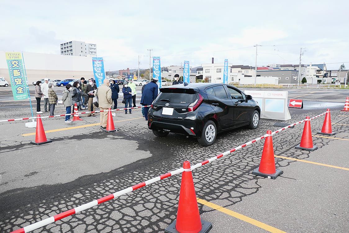 余市警察署は、ネッツトヨタ札幌(鎌田直之社長)とサポカー(安全運転サポート車)体験会をイオン余市店の駐車場で実施した=写真。高齢ドライバー30人が衝突被害軽減ブレーキなどの安全機能を体験。車の安全機能への注目が高まる中、体験会を通じてサポ...