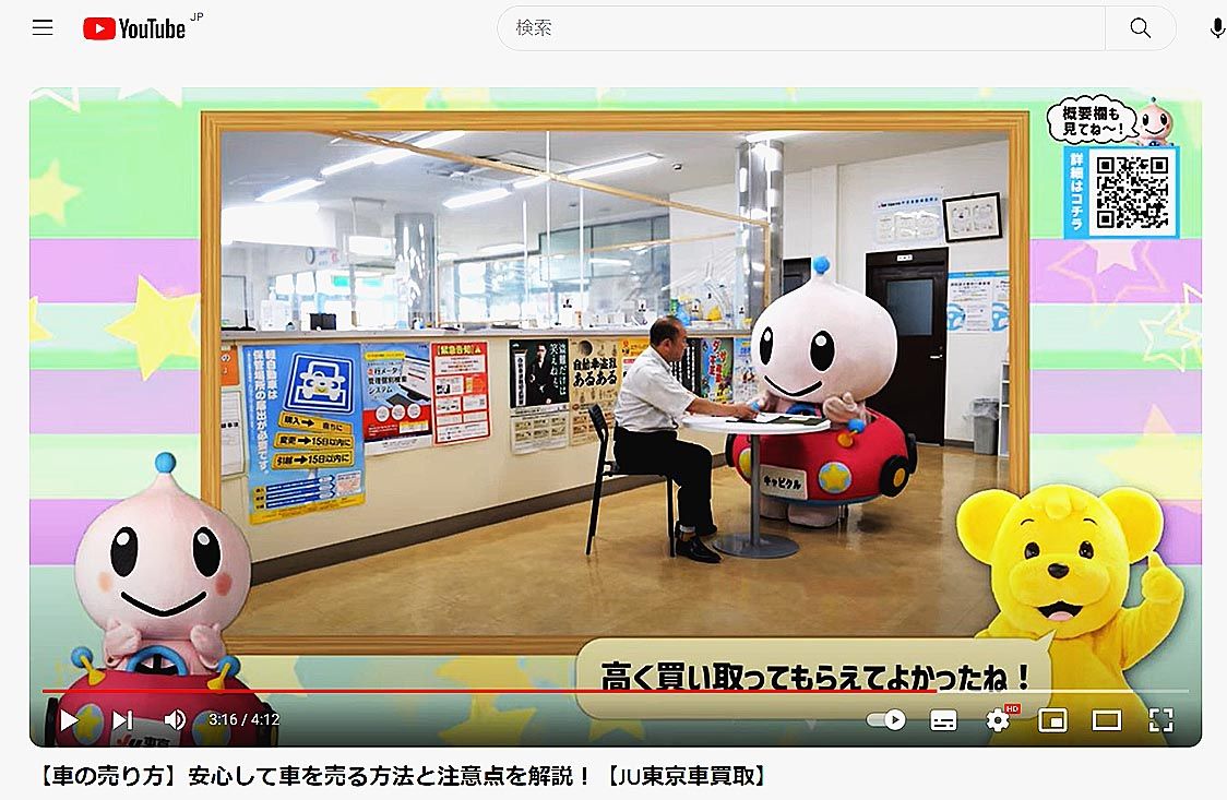 【東京】JU東京(萩田典雄理事長)は、小売支援で行っている「くるま買取」事業において、一般ユーザー向けに動画共有サービス「ユーチューブ」閲覧者向け広告を作成、動画により配信している=写真。 動画はユーザーの売却や査定に関しての不安や疑問を...