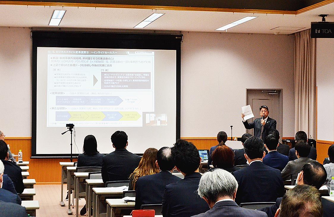 【山形】あいおいニッセイ同和損害保険とやまがた損害保険代理業協会は、山形市で保険代理店の生産性向上をテーマにセミナーを開催した=写真。会場となった山形市のほかに、酒田市と鶴岡市にウェブ配信するハイブリッド型で実施し、プロ代理店を中心にモー...