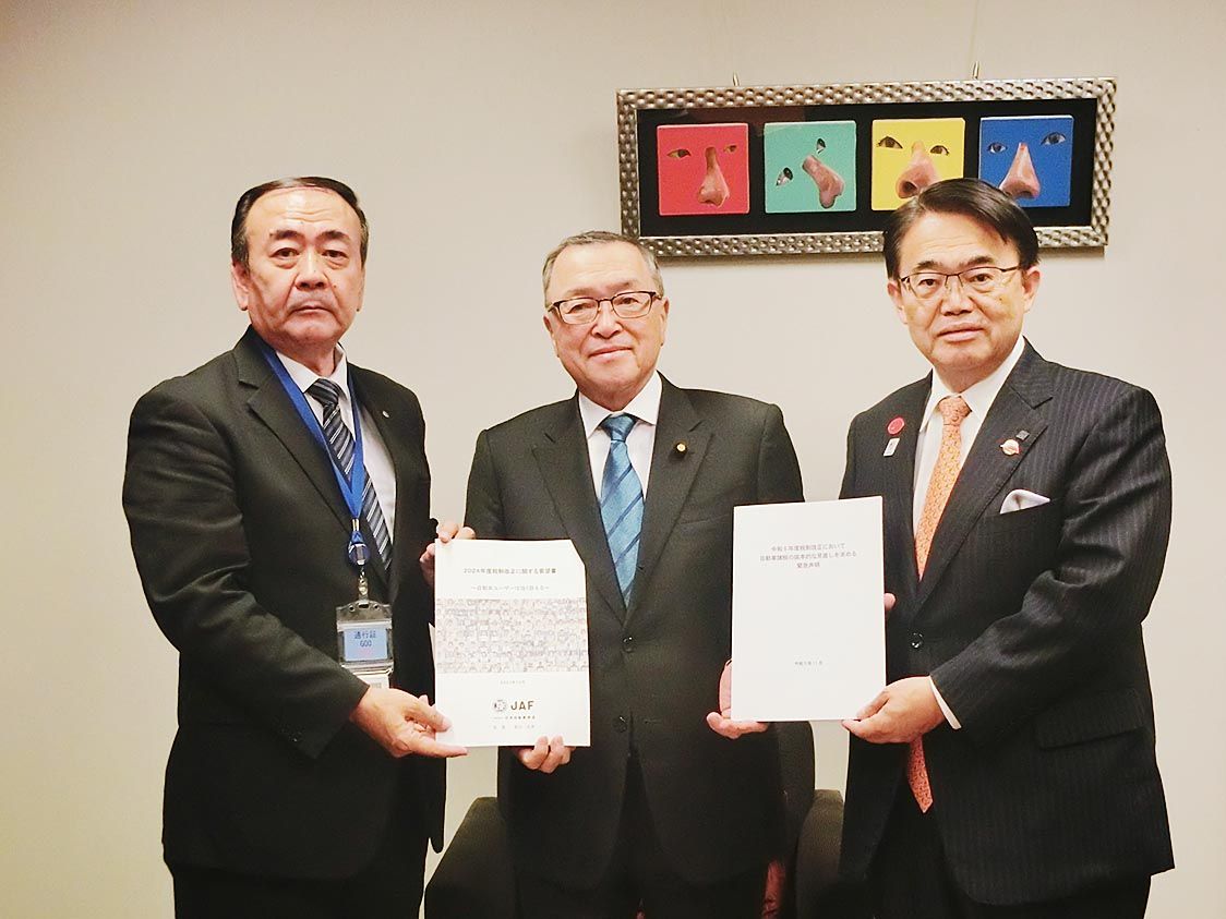 愛知県の大村秀章知事は15日、自民党の宮沢洋一税制調査会長に「自動車関係諸税の抜本的見直しを求める緊急声明」を含む要望書を手渡した。自動車ユーザーに対する税負担の軽減・簡素化や、自動車産業が国内投資を増やせるような施策の議論と実現を求めた...