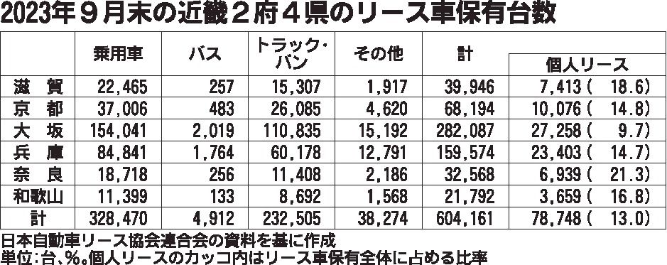 近畿地区リース車両、堅調に増加 保有台数が初の60万台に サブスクなど金融施策浸透、個人の利用が拡大