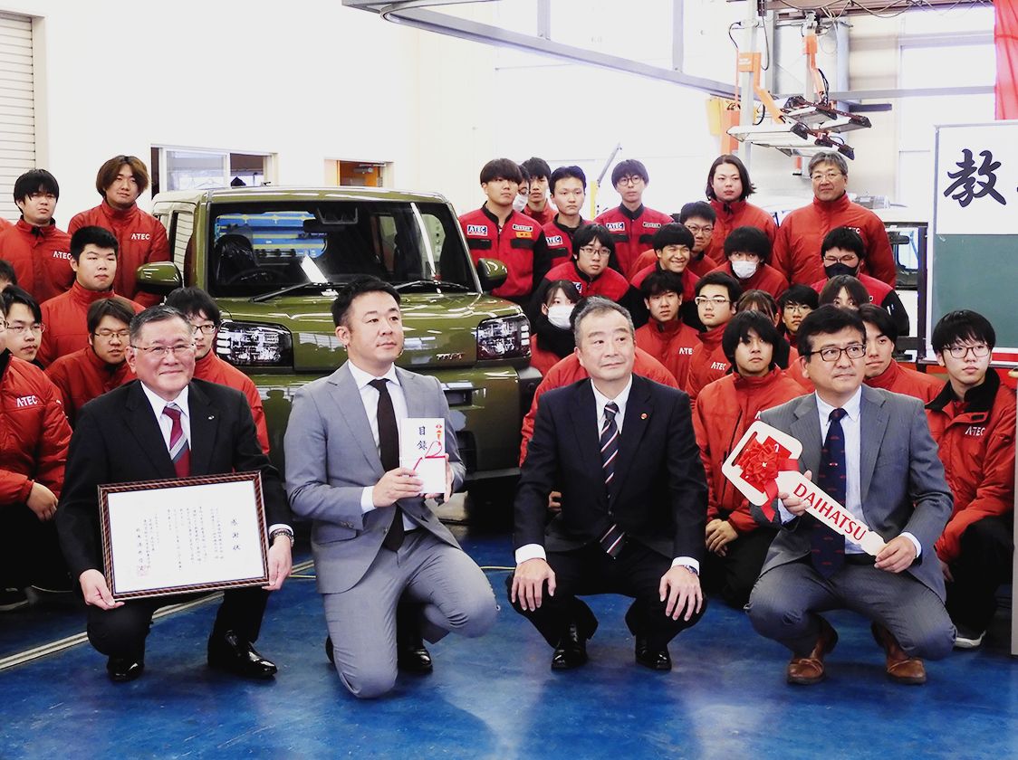 【芦別】ダイハツ北海道(藤原昌彦社長)と北北海道ダイハツ(佐藤浩光社長)は15日、北日本自動車大学校(酒井啓資校長)に軽自動車「タフト」1台を寄贈した。最新技術を搭載した車両教材として、実習授業などで活用される。 同日、同校のボデーリペア...