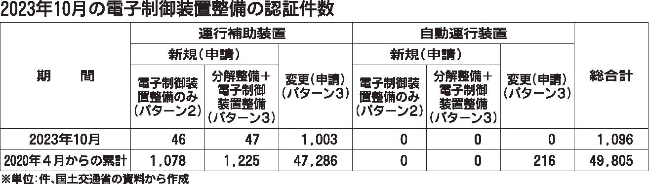 国交省、2023年6月の電子制御装置整備の認証件数は872件