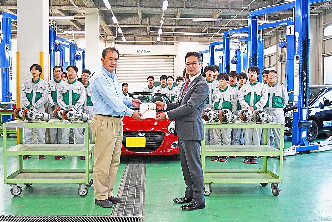 【静岡】ダイハツ沼津(池原勉社長)とダイハツ工業は、富士メカニック専門学校(渡辺英和校長、静岡県小山町)に実習用教材を寄贈、同校で寄贈式を執り行った。 今回寄贈した教材は「デファレンシャルギアASSY」8基。同校は部品の構造や作動の仕組み...