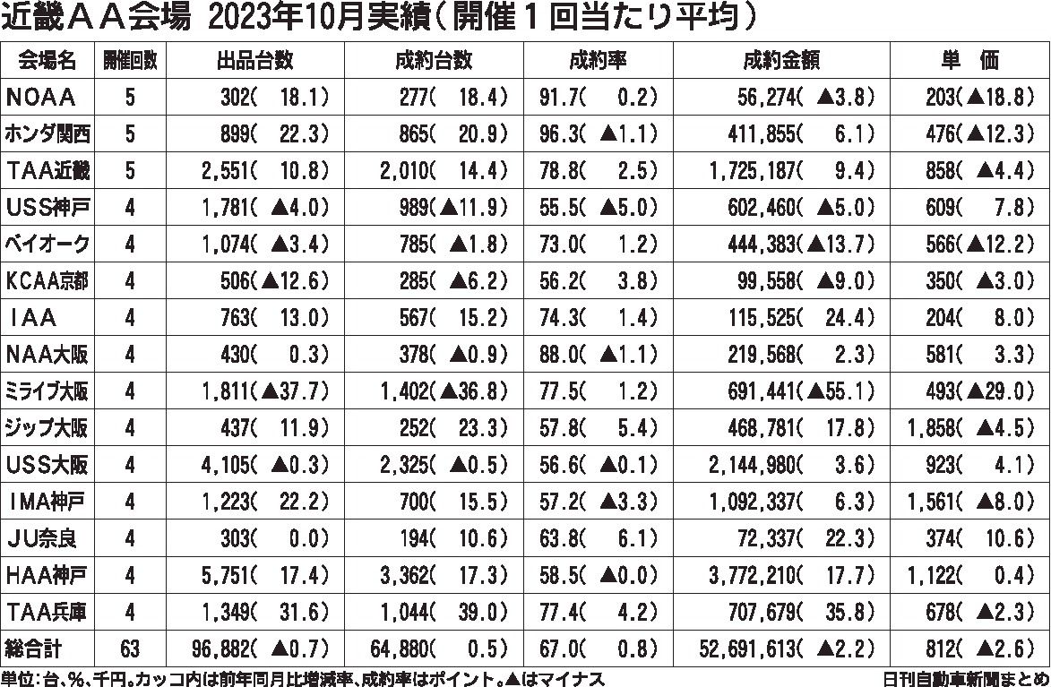 近畿AA、10月実績 出品台数が微減 タマ不足感漂う