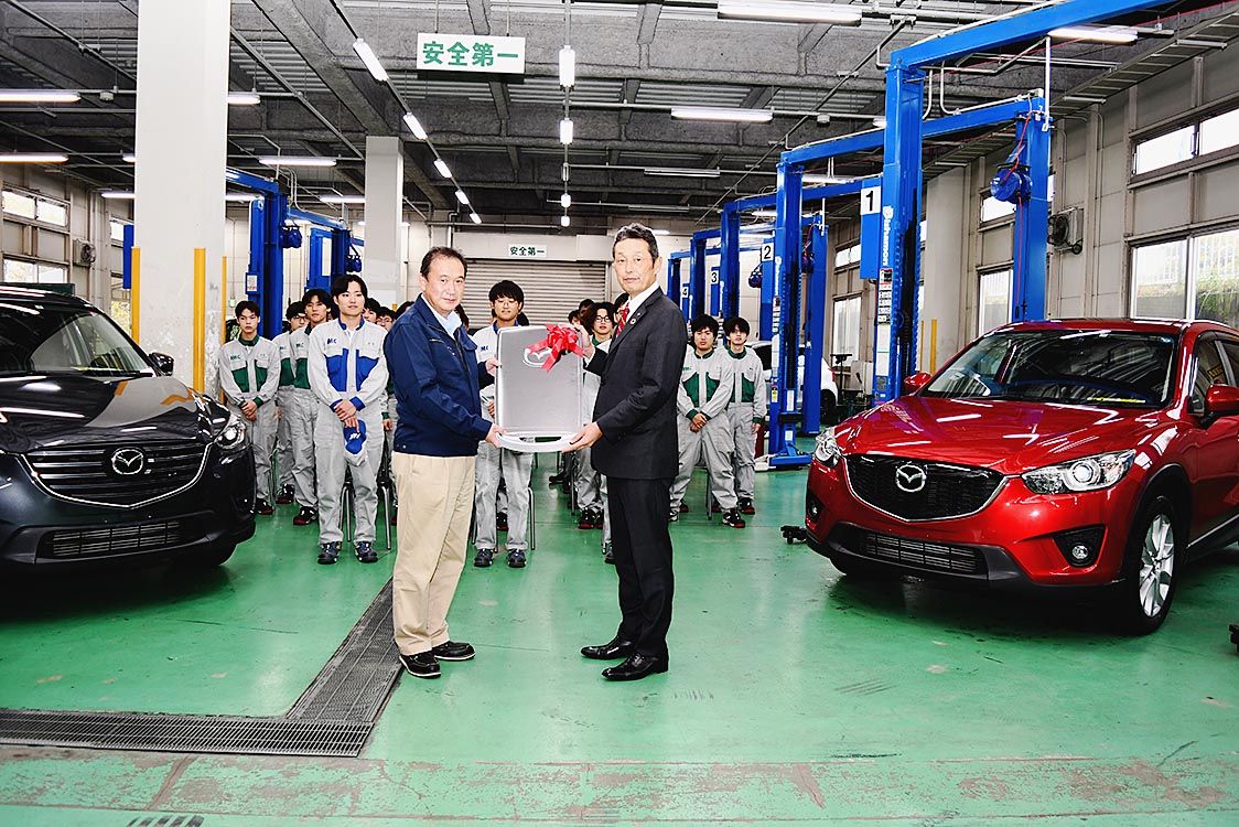 【静岡】静岡マツダ(日置輝明社長)は、富士メカニック専門学校(渡辺英和校長、静岡県小山町)に教材車両として、「CX―5」ディーゼル車2台を寄贈、同校で寄贈式を行った。同校は、ディーゼルエンジンの構造などを学ぶ授業に活用する。 式典には、日...