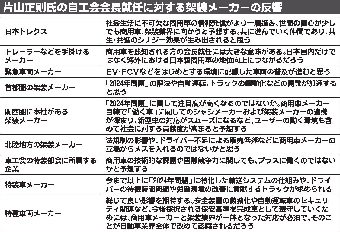 いすゞ片山正則氏の自工会次期会長就任、架装メーカー各社から歓迎の声 車工会とのさらなる連携に期待