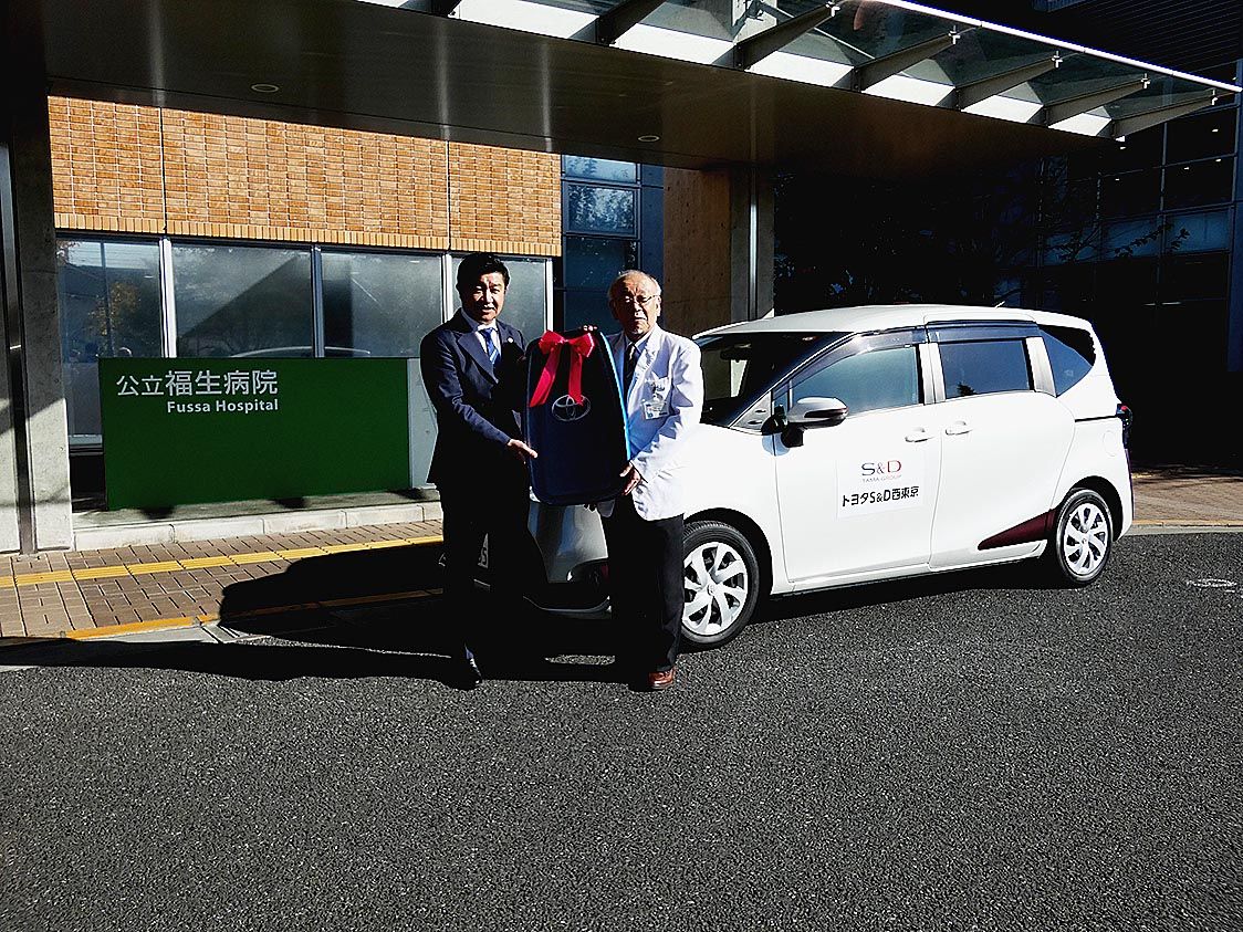 トヨタS&D西東京(田村勝彦社長)は、公立福生病院企業団(松山健企業長)に患者搬送や往診での移動車両としてトヨタ「シエンタ」を寄贈した=写真。 同社は、コロナ禍の2021年9月から23年9月の期間中、福生市に「コロナ患者移送用車両」として...
