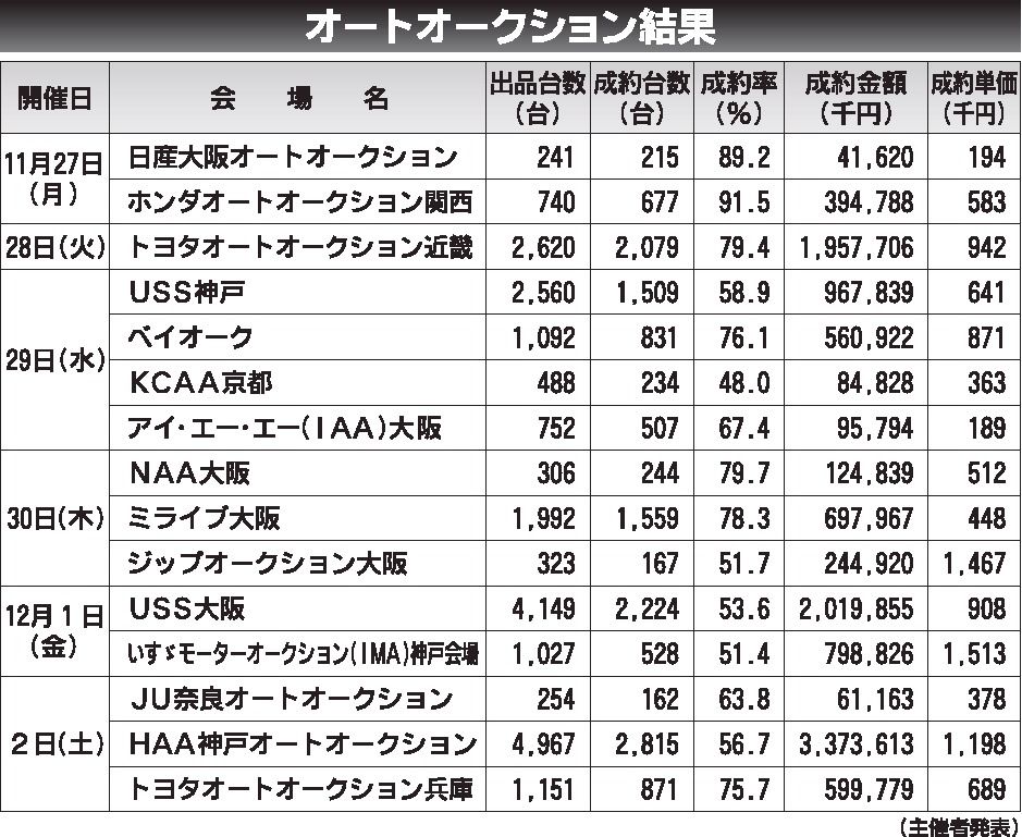 〈オートオークション結果〉近畿地区 2023/11/27~12/2