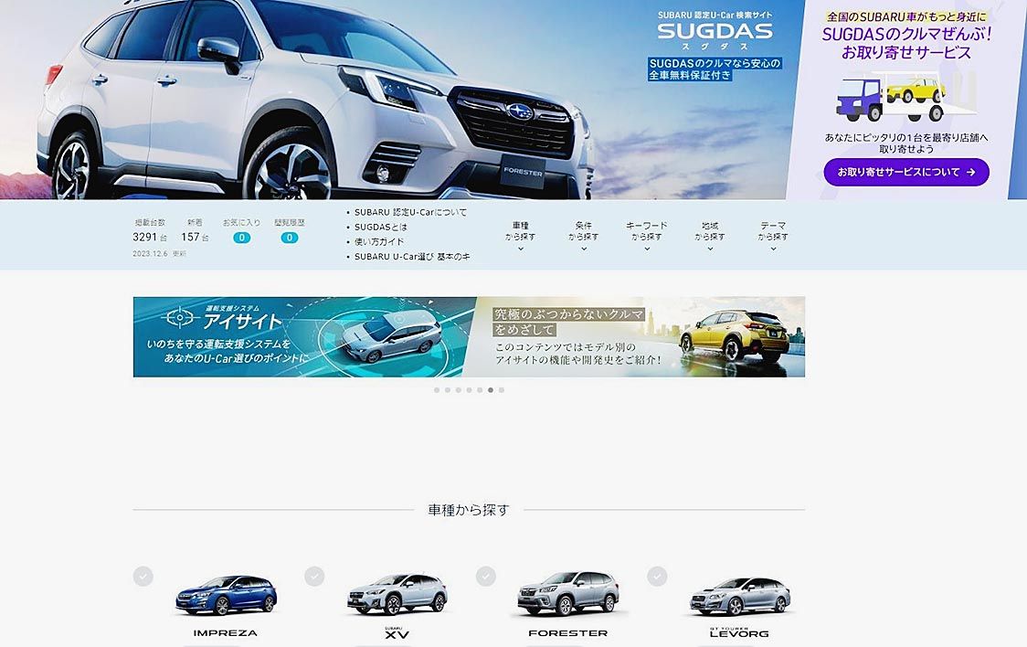 スバル、認定中古車在庫を全国で共有 公式情報サイト「スグダス」に機能実装 新車拠点の半数で新サービスに対応