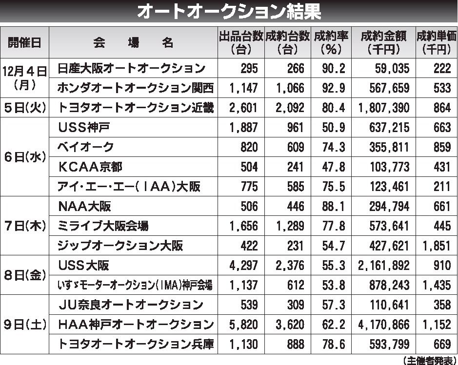 〈オートオークション結果〉近畿地区 2023/12/4~9