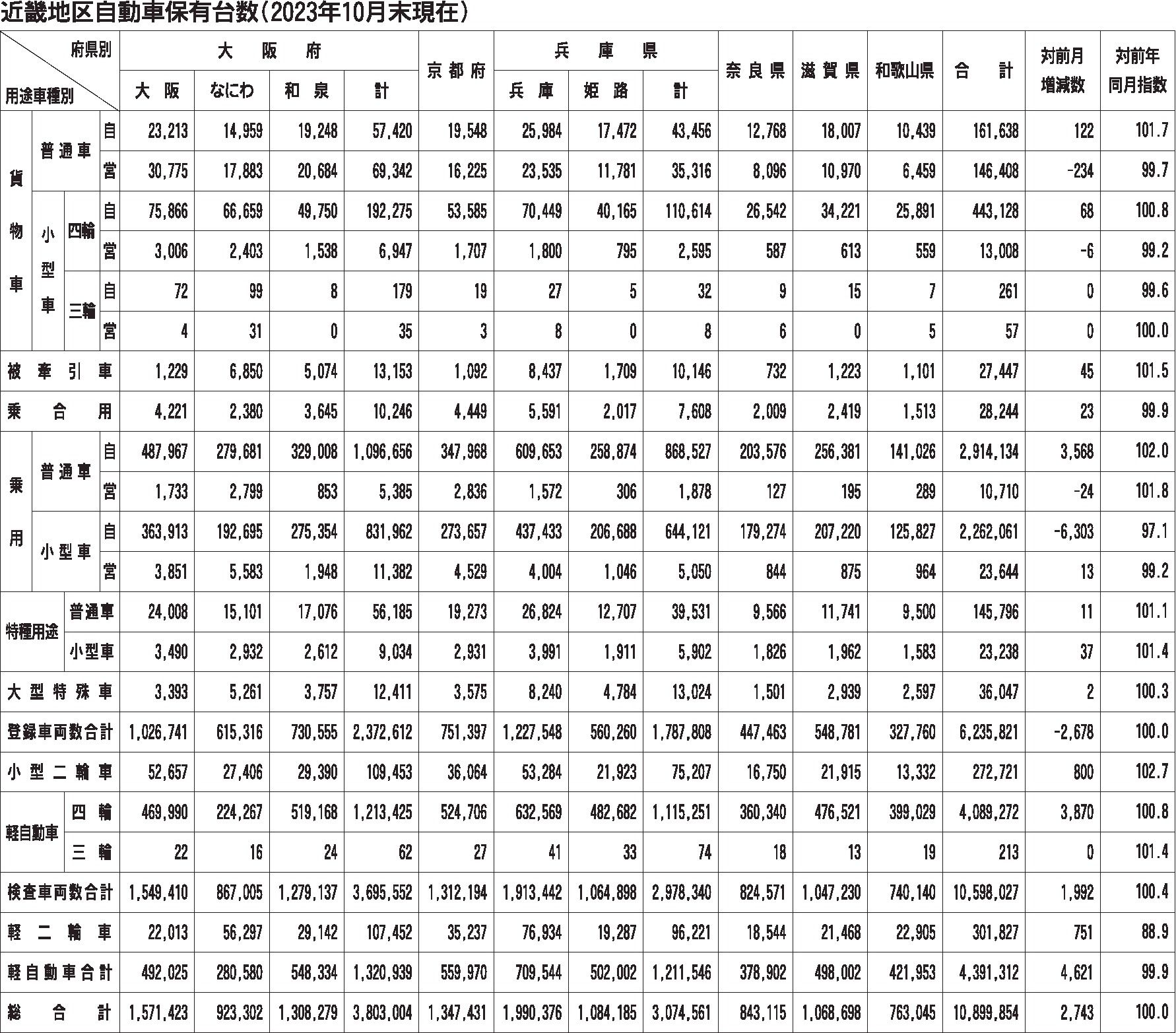 〈近畿地区自動車保有台数(2023年10月末現在)〉