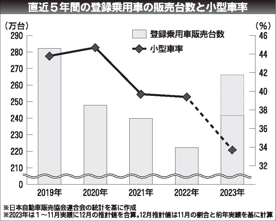 登録乗用車市場で「5ナンバー」の小型乗用車の割合が低下している。ここ数年、40%前後で推移していたが、2023年は3分の1程度になりそう。こうした中、スズキは「小型車にこだわった」(鈴木敏明取締役専務役員)という新型「スイフト」を発売した...