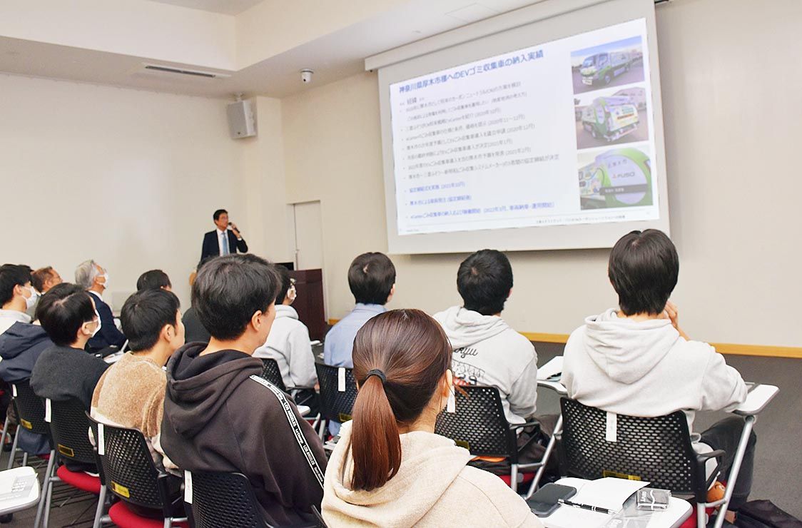 三菱ふそうトラック・バスの松永和夫会長と恩田実開発本部エンタイヤービークル開発統括部長は11月16日、山梨大学甲府キャンパス(山梨県甲府市)で講演した。テーマは「新たな時代に入る産業政策と自動車産業─三菱ふそうトラック・バスのCNへの挑戦...