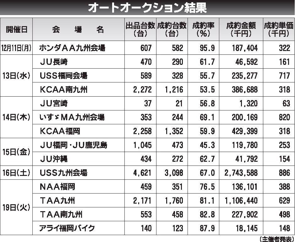 〈オートオークション結果〉九州地区 2023/12/11~19