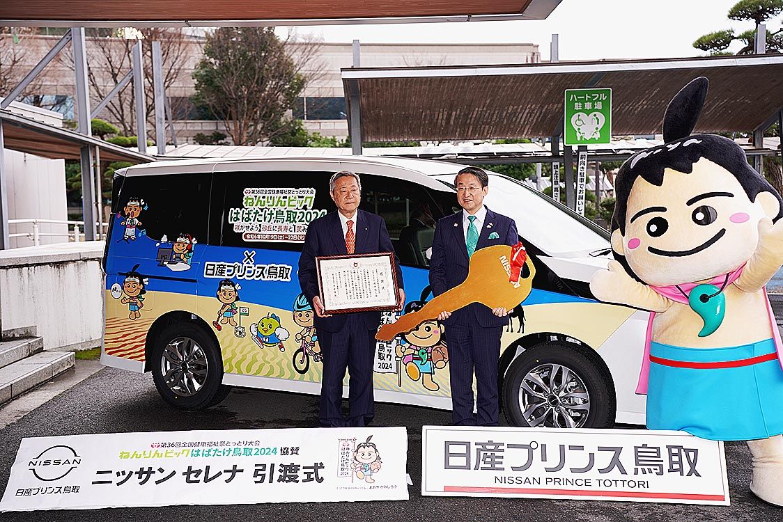 【鳥取】日産プリンス鳥取(櫻井誠己社長)は、2024年10月に開催される「第36回全国健康福祉祭とっとり大会(ねんりんピックはばたけ鳥取2024)」に協賛し、同実行委員会(平井伸治会長=鳥取県知事)に日産「セレナ」1台を貸与した。県内各地...