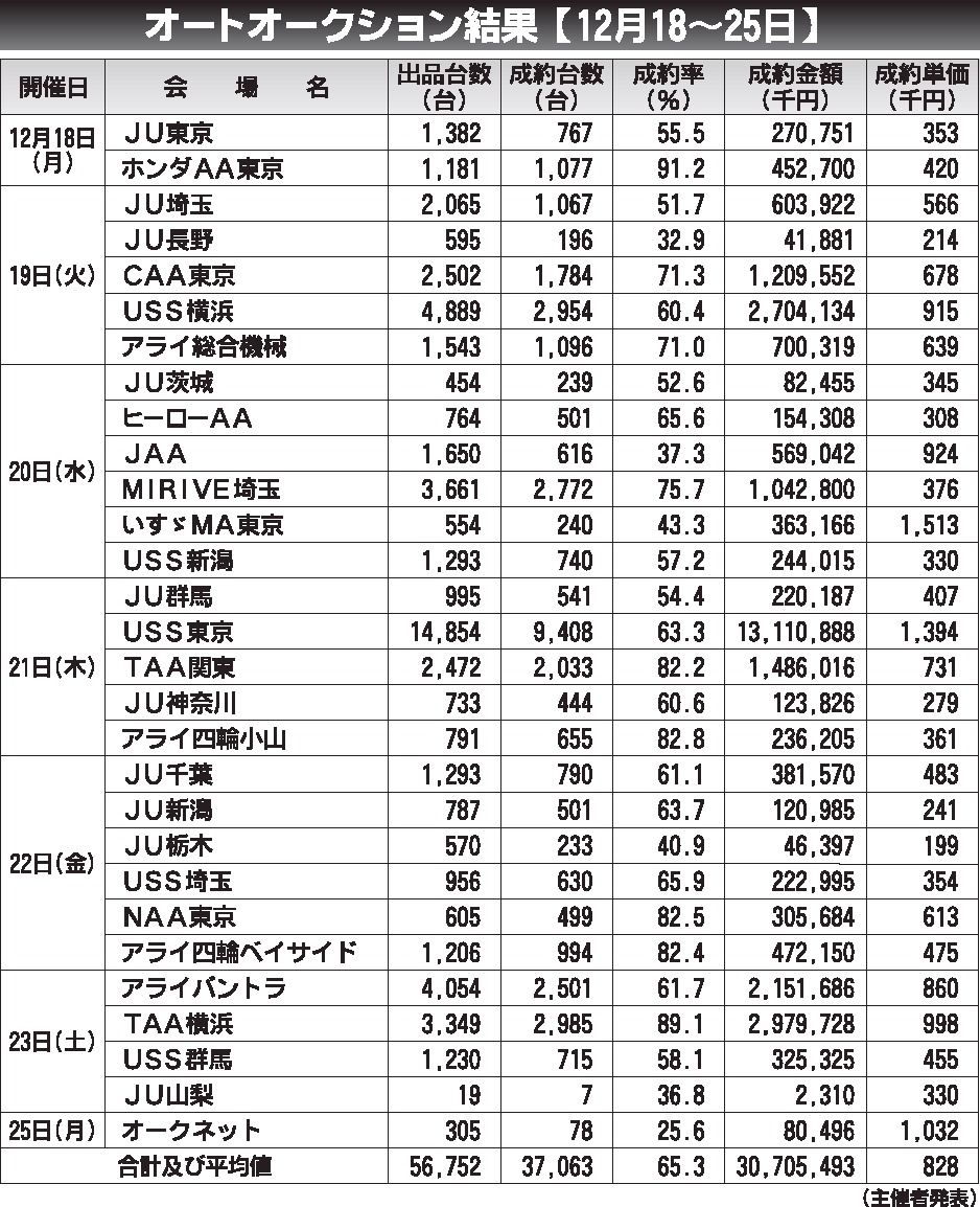 〈オートオークション結果〉首都圏 2023/12/18~25