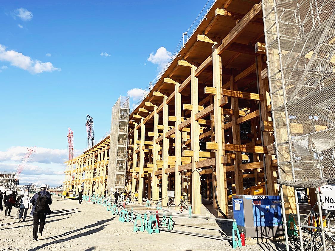 大阪・関西万博のシンボルとして建設が進む大屋根(リング)。一部に国産木を使用した構造用集成材を、日本の在来技術である貫(ぬき)工法に着想を得て組み上げる壮大なオブジェについて、2025年日本国際博覧会協会の副会長を務める吉村洋文大阪府知事...