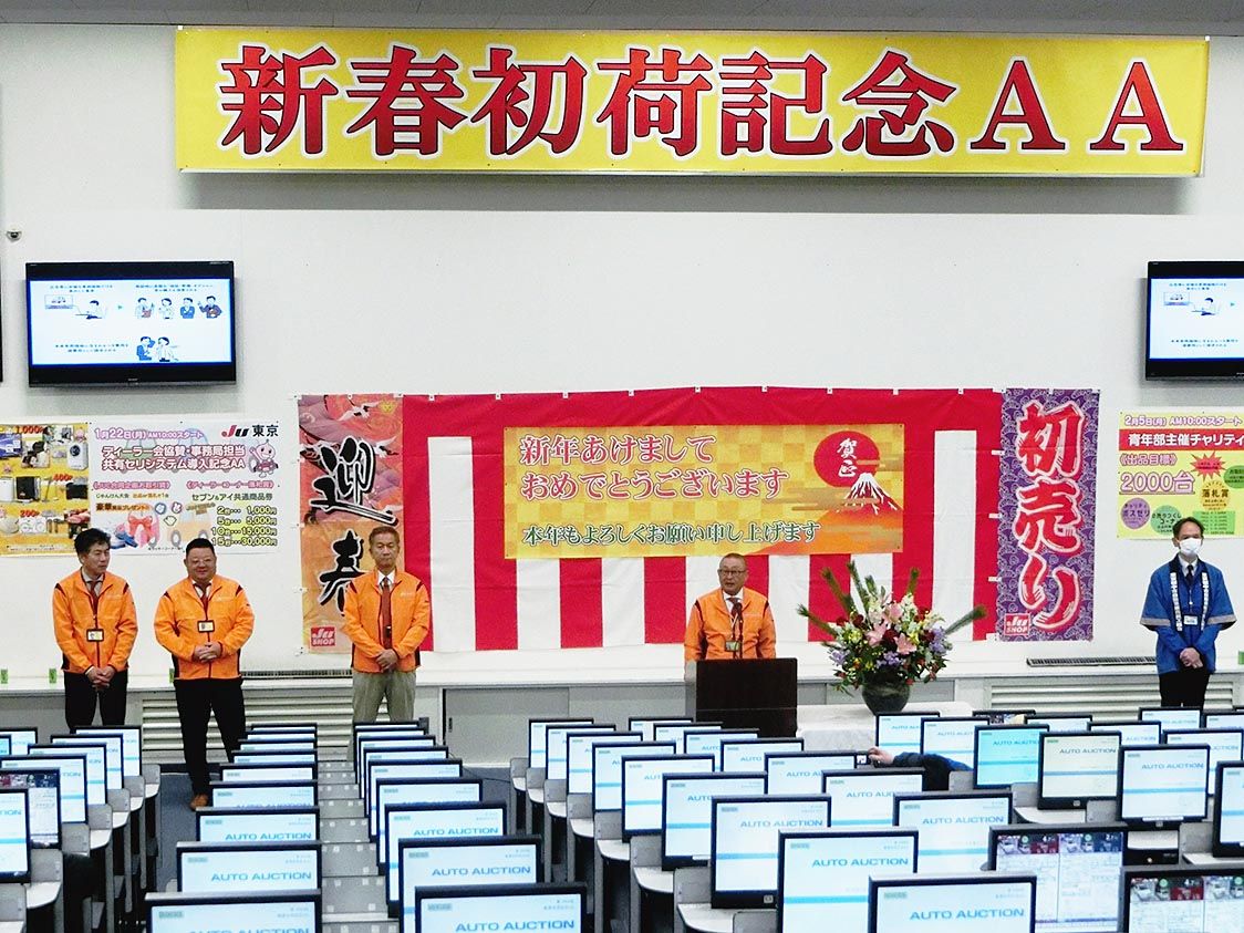 【東京】JU東京(萩田典雄理事長)は8日、新春初荷記念AAを開催し、出品台数1103台、成約率62・6%と、ともに昨年を上回り幸先の良いスタートを切った=写真。 萩田理事長は、令和6年能登半島地震の被災者への見舞いの言葉を述べた上で「私た...