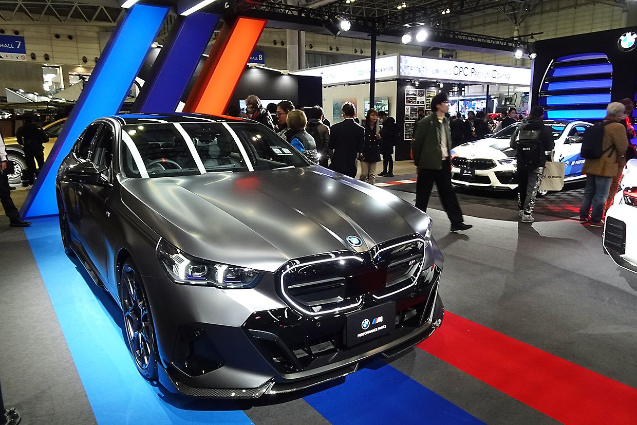 ビー・エム・ダブリュー(BMWジャパン、長谷川正敏社長、東京都港区)は、純正チューニングパーツ「Mパフォーマンスパーツ」装着車を中心に展示。「M2」や「M3ツーリング」などのガソリン車に加えて、EV「i5」の高性能グレード「M60xドライブ」のカスタマイズモデルも用意した。