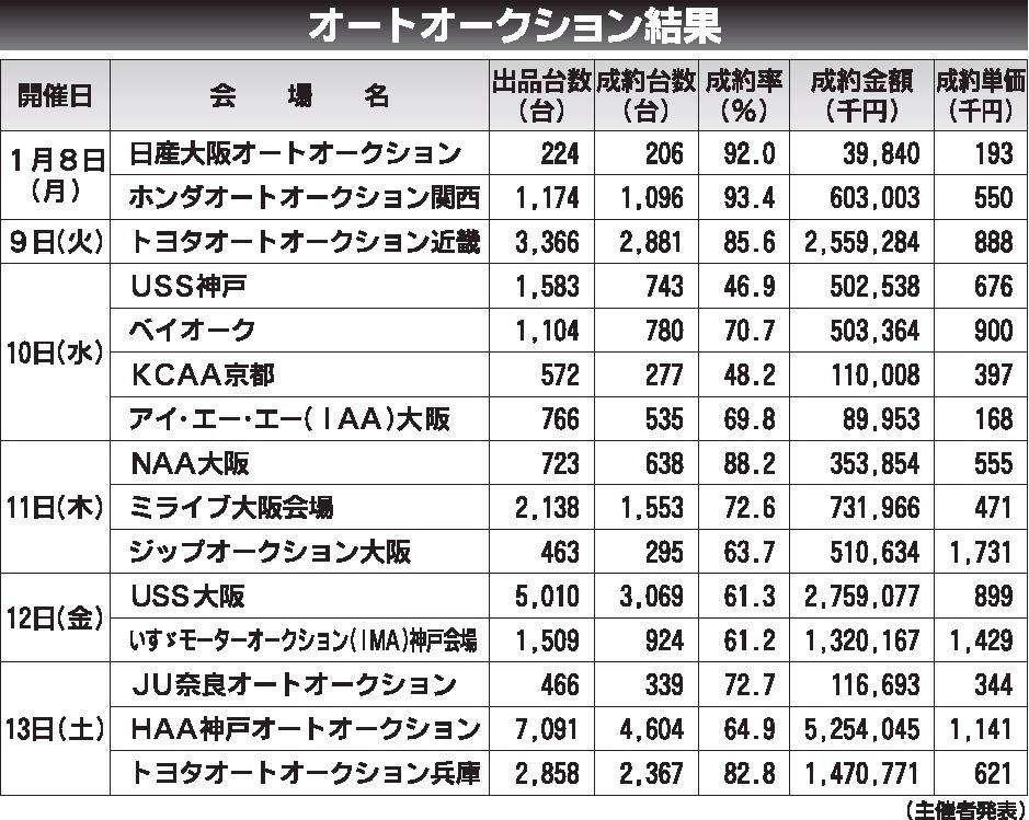 〈オートオークション結果〉近畿地区 2024/1/8~13