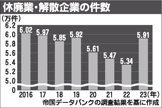 帝国データバンクと東京商工リサーチ調査、2023年の倒産企業が2桁増 原価高騰や人手不足で苦境