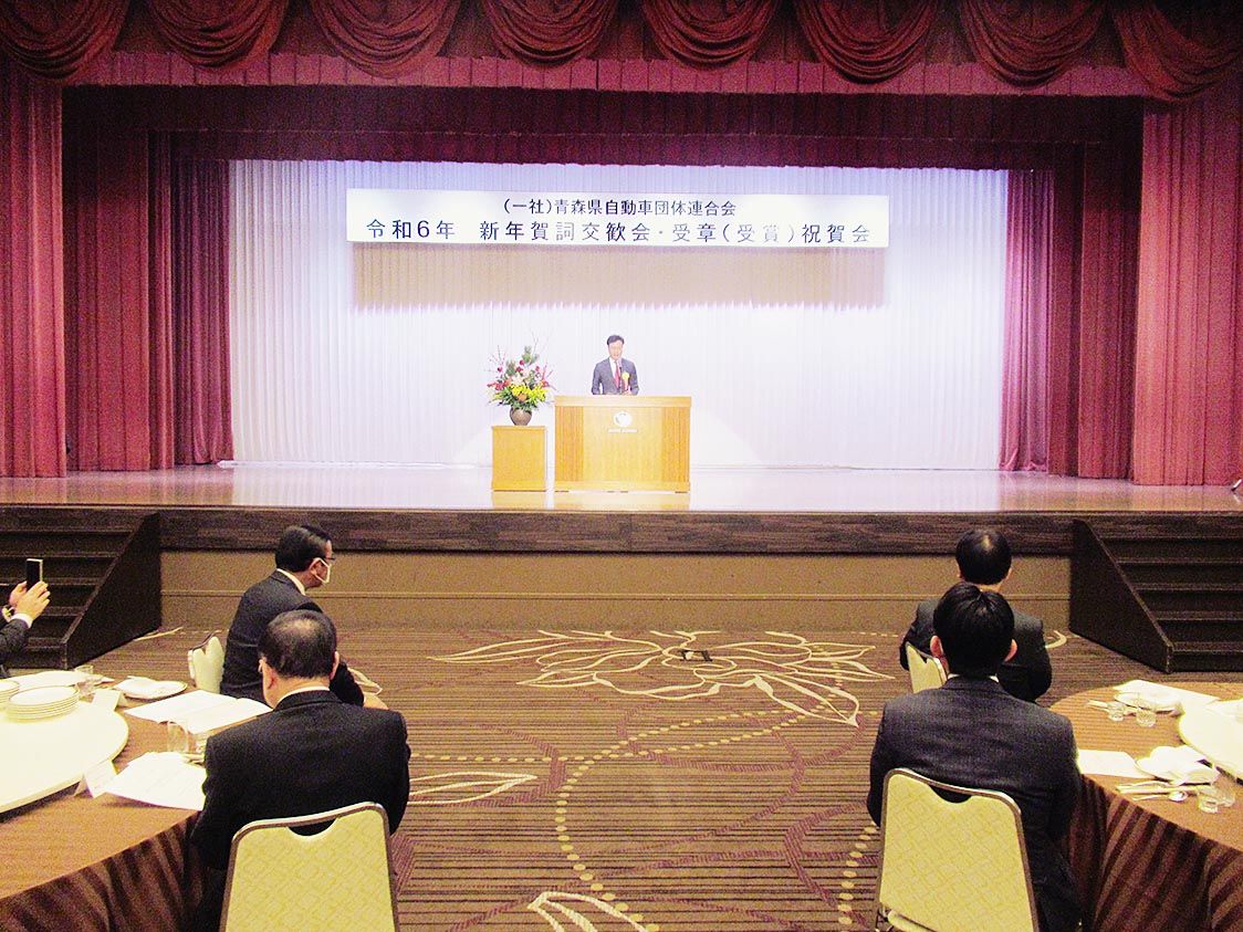 【青森】青森県自動車団体連合会(小野大介会長)は、青森市で「令和6年新年賀詞交歓会並びに受章(受賞)祝賀会」を開催した=写真。同連合会の構成団体をはじめ、自動車関連団体のトップ、役員、地元の国会議員、首長ら合わせて71人が出席し、新年の門...