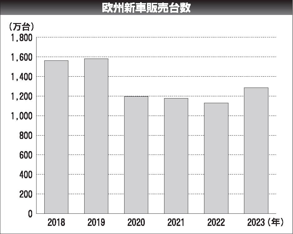 欧州自動車工業会(ACEA)がまとめた2023年の新車販売台数は前年比13・7%増の1284万7481台となり、4年ぶりに増加した。長期化していた半導体不足の影響が緩和し、販売台数の増加につながったが、コロナ禍前の19年(約1581万台)...