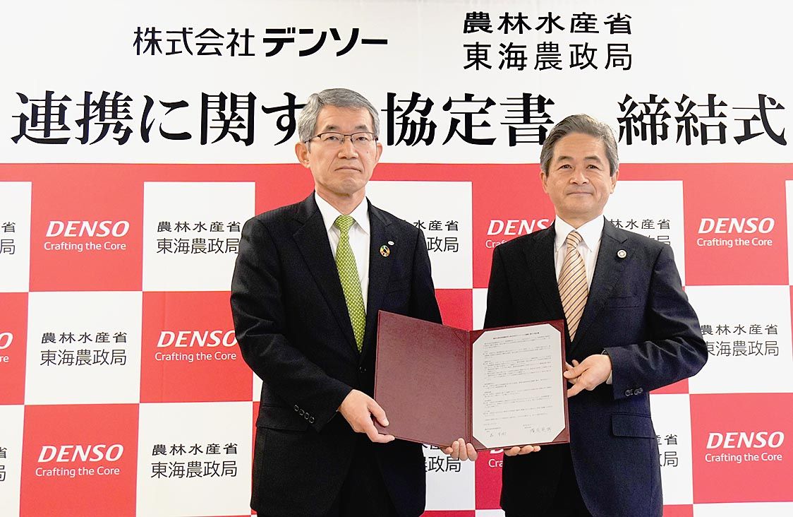 デンソーは、農林水産省東海農政局(森重樹局長)と食農分野の連携協定を締結した=写真。スマート農業や食流通分野の効率的な物流の実現に向けて連携し、就農人口の減少や物流2024年問題といった社会課題の解決に貢献する。 同社が浅井農園(浅井雄一...
