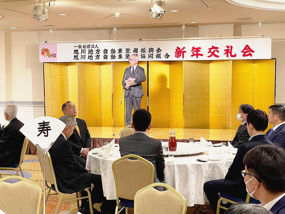 【旭川】旭川地方自動車整備振興会・同整備協同組合(竹川秀幸会長・理事長)は、新年交礼会を市内のホテルで4年ぶりに開催。自動車関係団体や会員らが出席し、整備動向の先行きなどについて意見を交わした=写真。 はじめに竹川会長・理事長は「まず令和...