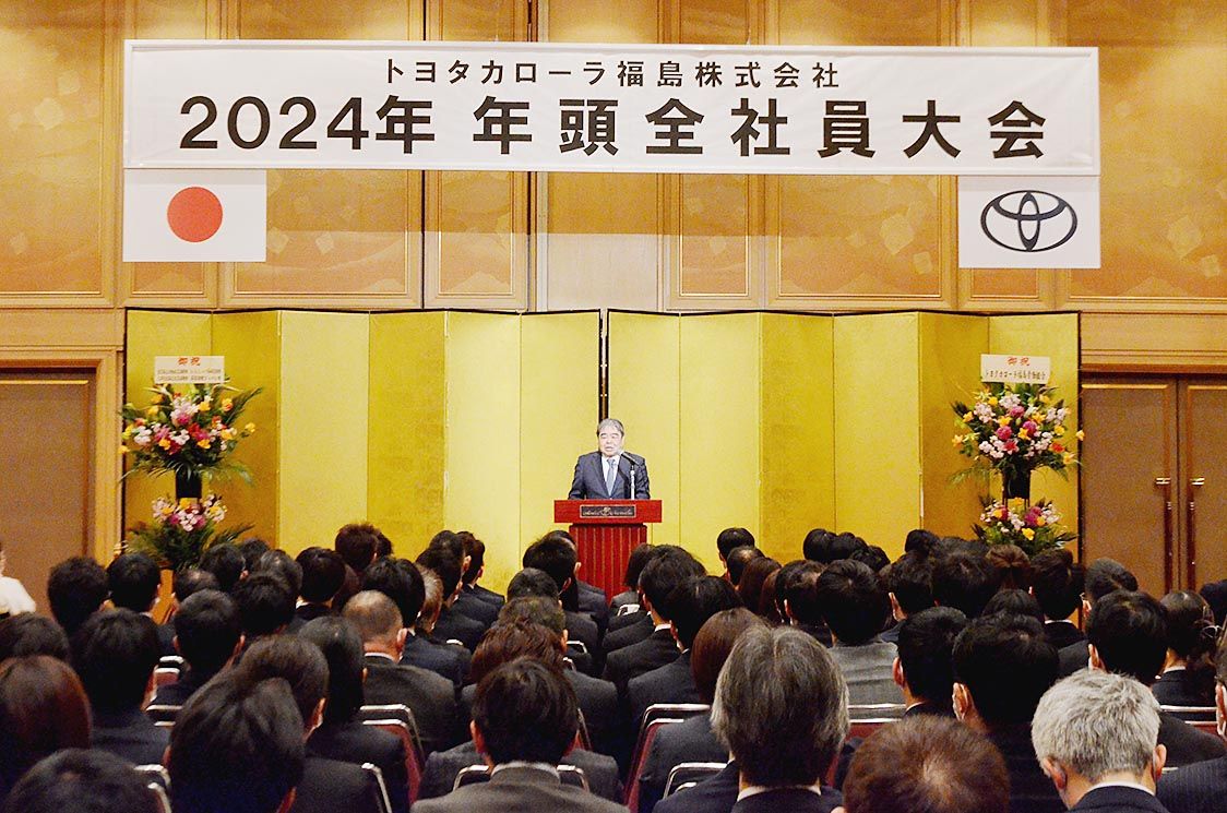 【福島】トヨタカローラ福島(佐藤良也社長)は郡山市で「2024年年頭全社員大会」を開催した=写真。社員が一堂に会しての開催は4年ぶりとなった。23年の実績を振り返り、デジタルを活用した業務効率化で収益や顧客との接点強化を図りつつ、働きやす...