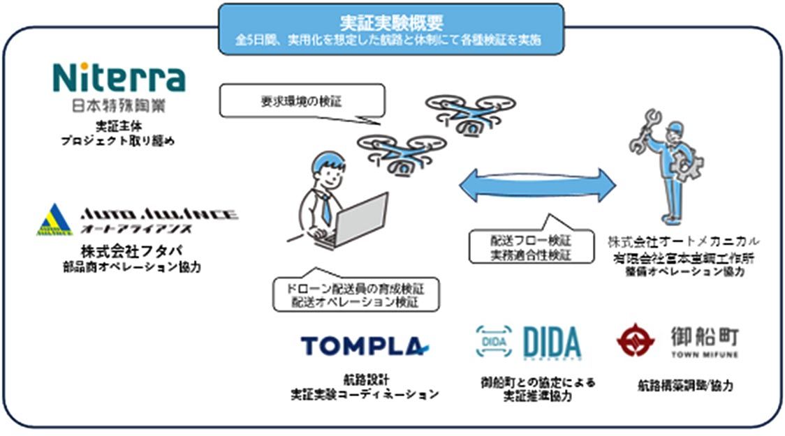 トンプラ、日本特殊陶業・フタバと熊本で補修部品のドローン配送実証実験
