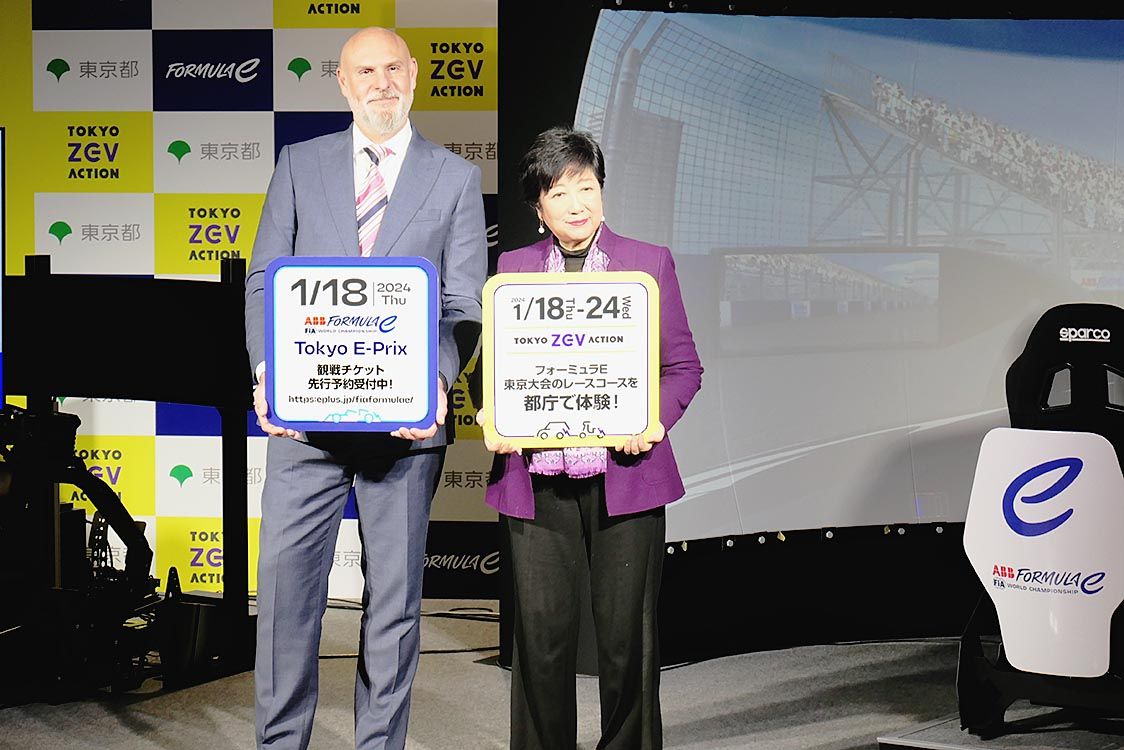 東京都は、東京都庁(東京都新宿区)で、「トーキョーZEVアクション×フォーミュラE東京大会PRイベント」のオープニングセレモニーを開催した。小池百合子都知事とフォーミュラEのジェフ・ドッズCEOが登壇。3月30日に開催される同大会の魅力な...