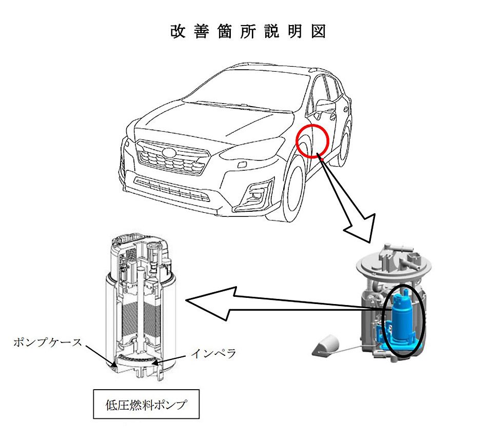 国交省によると、低圧燃料ポンプの樹脂製インペラ(羽根車)で成形条件が不適切なため、樹脂密度が低いものが燃料で変形し、作動不良につながることがある。最悪の場合、走行中にエンストする恐れがある。