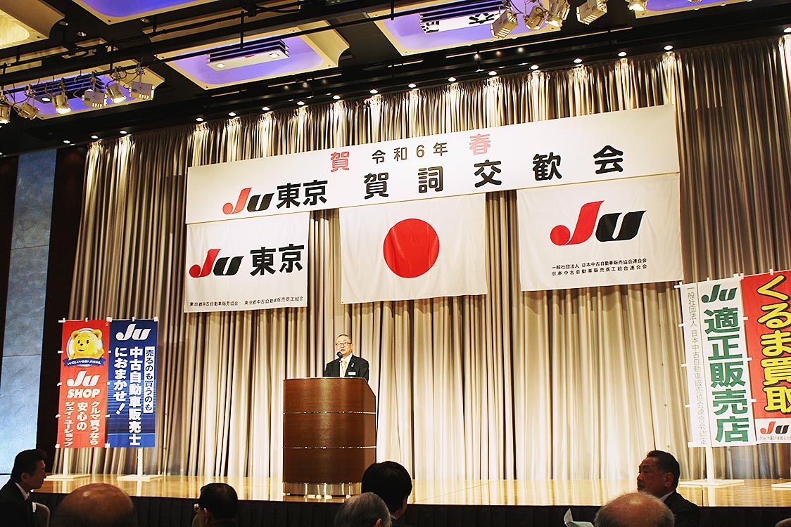 【東京】東京都中古自動車販売協会・同商工組合(JU東京、萩田典雄会長・理事長)は、都内のホテルで「JU東京令和6年賀詞交歓会」を開催した=写真。 式では海津博JU中販連会長(JU新潟会長・理事長)をはじめ来賓があいさつし、東京都の小池百合...