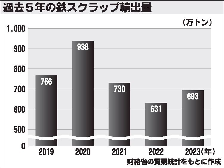 2023年の鉄スクラップ輸出、円安で3年ぶり増加 自動車業界も需要拡大に期待