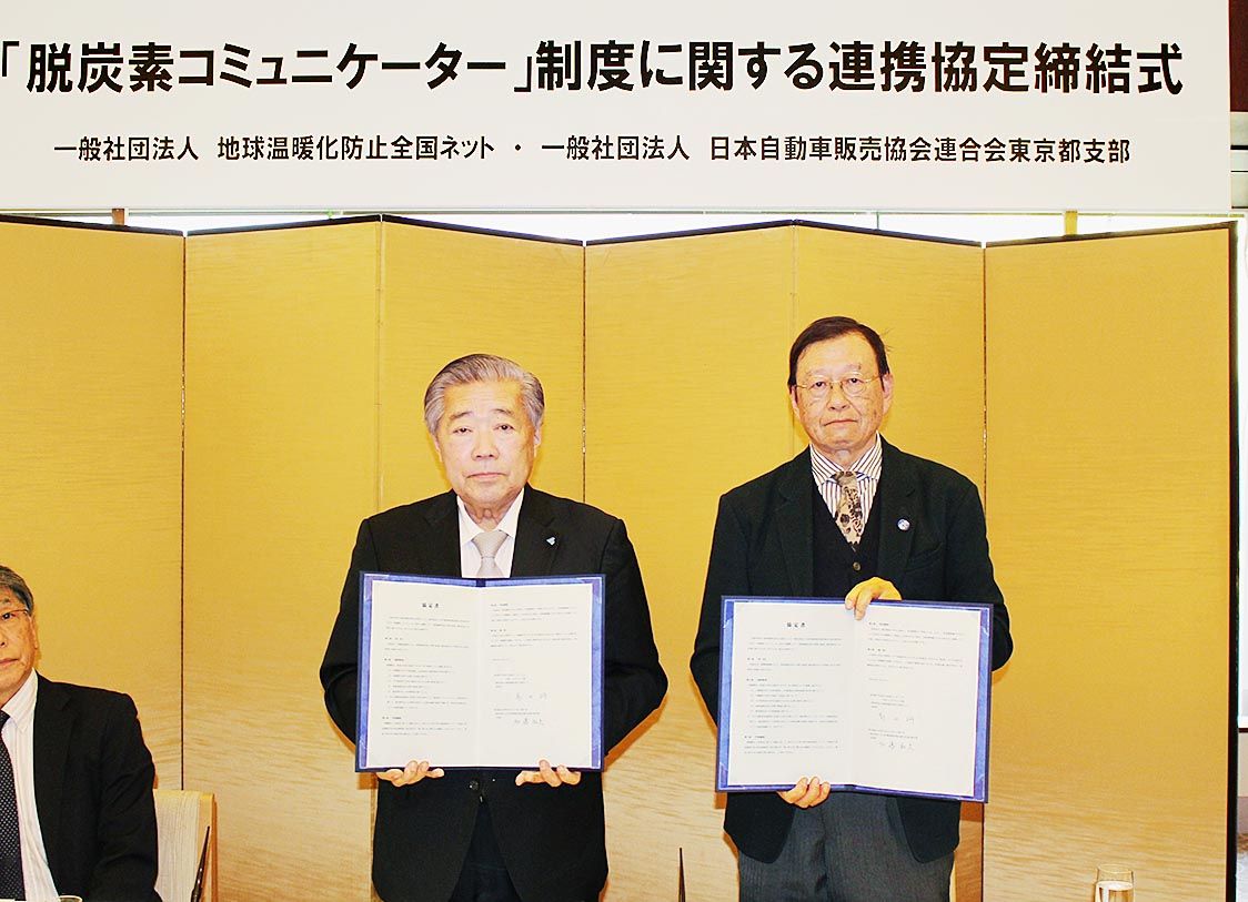 【東京】日本自動車販売協会連合会東京都支部(自販連東京、加藤和夫支部長)は、地球温暖化防止全国ネット(高田研理事長)と「脱炭素コミュニケーター」制度に関する連携協定を締結した。同制度を通じ、自動車販売に携わる支部会員がカーボンニュートラル...