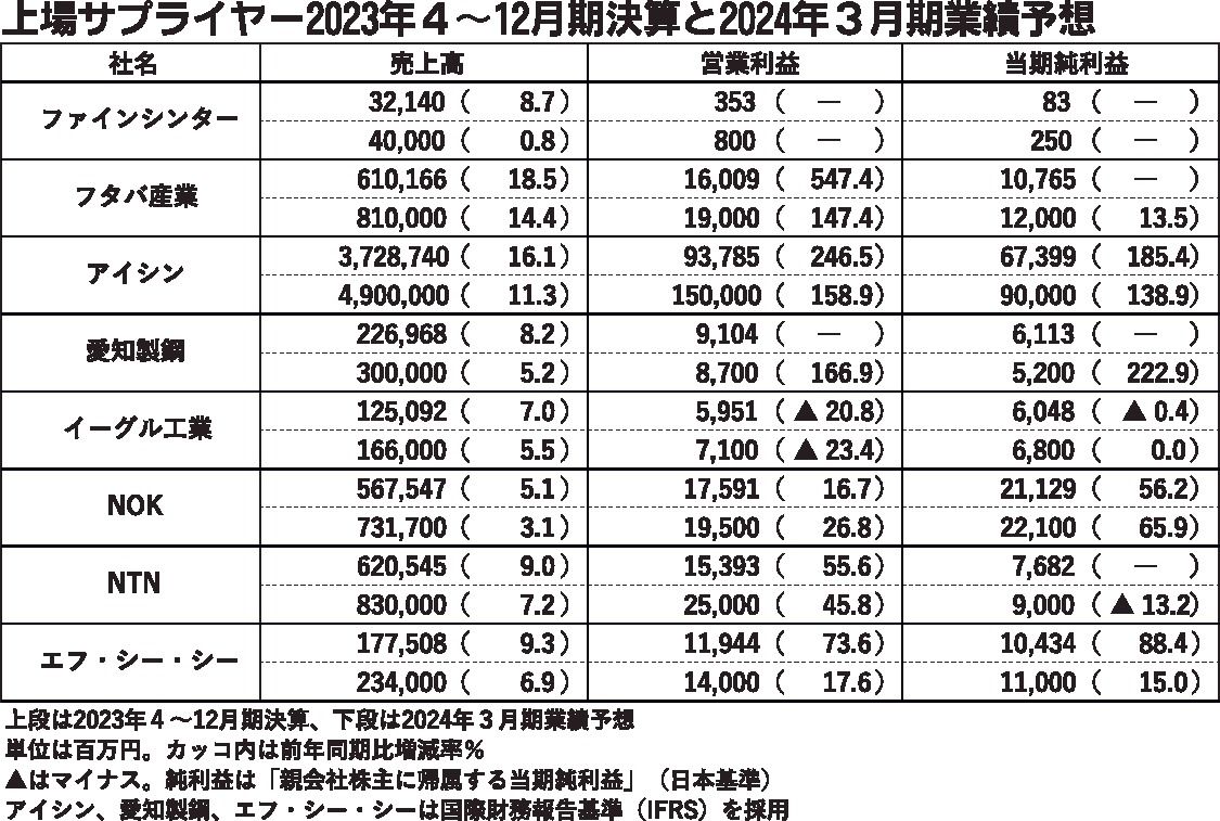 〈上場サプライヤー2023年4~12月期決算と2024年3月期業績予想〉(2/9付)