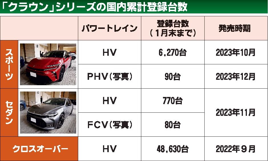 プラグインハイブリッド車(PHV)の品ぞろえが国内でじわりと増えている。先導役はトヨタ自動車だ。2012年の「プリウスPHV」を皮切りに国内7車種目となる「クラウンスポーツ」のPHVも23年末に発売した。プリウスPHVの発売当初はハイブリ...