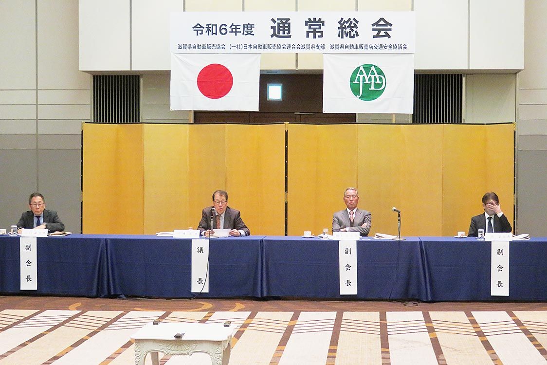 【大津】自販連滋賀県支部は、大津市のホテルで「通常総会・定例代表者会議」を開催した=写真。通常総会では昨年度の事業報告や今年度の収支予算などを承認した。代表者会議では各委員会の事業報告や関連団体の取り組みなどの議案を審議した。 9日の総会...