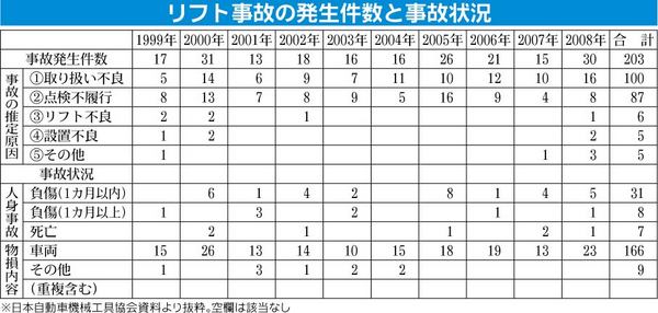 整備用リフトの事故原因がより明確になってきた。日本自動車機械工具協会(機工協、中谷良平会長)がこのほどまとめた「2008年リフト事故集計表」によると、発生件数は30件と07年の2倍となった。またリフト事故の原因は取り扱い不良と点検不履行が...