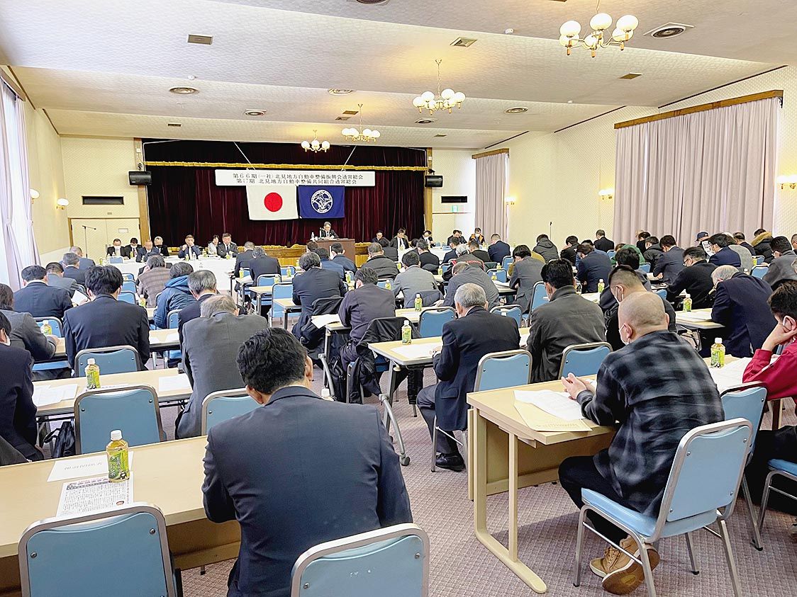 【北見】北見地方自動車整備振興会・同地方自動車整備協同組合は市内で通常総会を開催=写真。今年度事業計画など議案をすべて可決した。任期満了に伴う役員改選で片山英樹副会長・副理事長を新たな会長・理事長に選出した。 理事会の互選で渡辺政貴副会長...