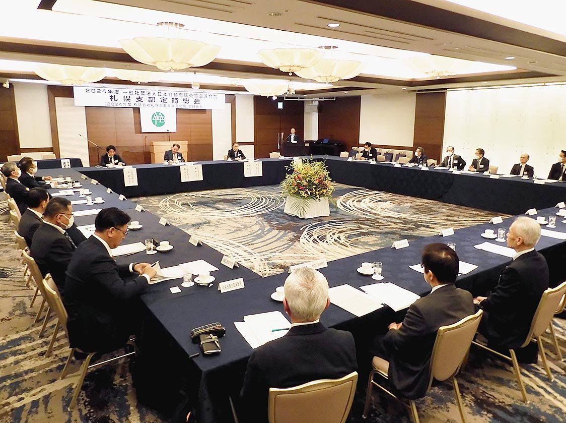 自販連札幌支部(沖田俊弥支部長)は、定時総会を市内のホテルで開催し、任期満了に伴う役員改選で沖田支部長ら三役の留任を決めた。任期は2年。 2024年度は、ワンストップサービス(OSS)のさらなる利用促進を進め、完成検査台数に占めるOSS新...