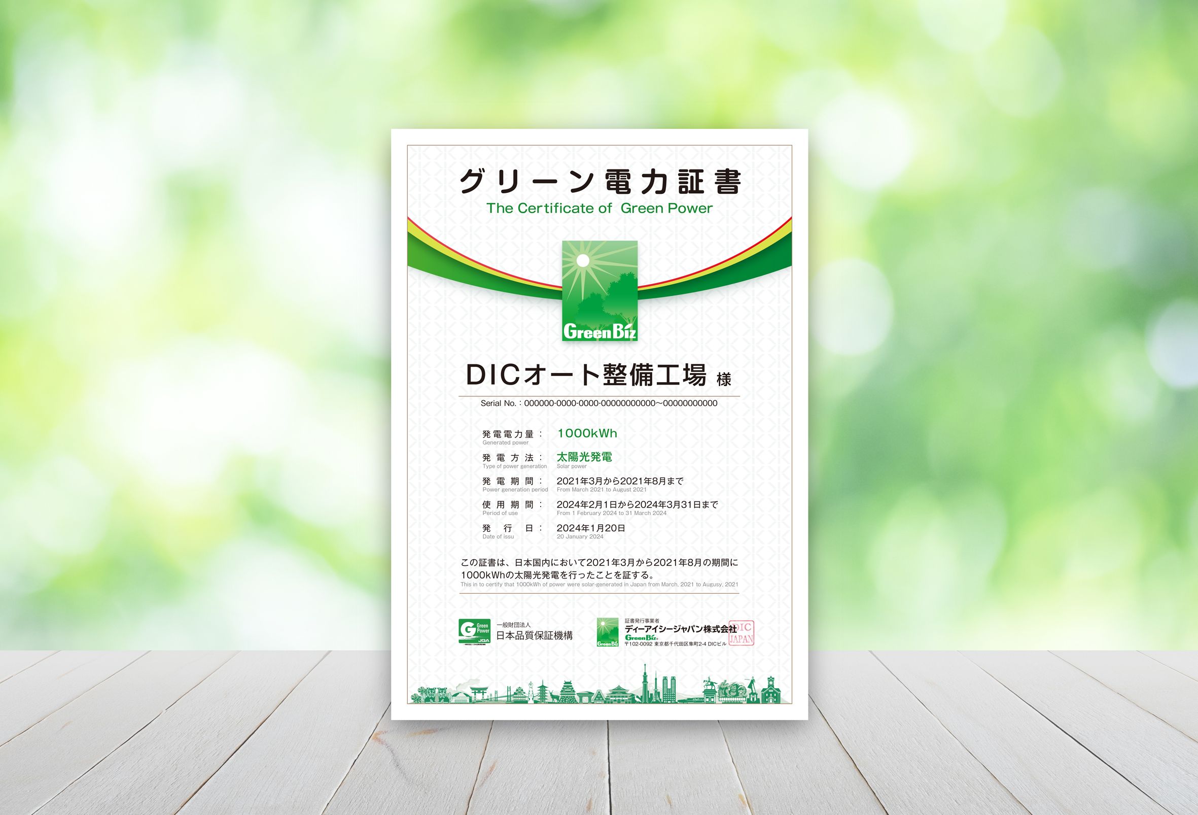 同証書はソーラー発電等の「環境価値」を証書化したもの。今回出展する「GreeEN車検(グリーン車検)」は、同証書を活用したビジネスモデルで、整備工場はこの証書を活用することでCO2を排出しない電力を使用したことになる。