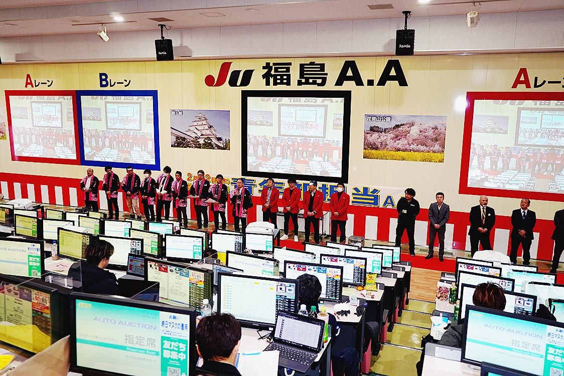 【福島】JU福島(橋本一男理事長)は福島市の常設中古車オークション(AA)会場で「青年部担当AA」を開催した=写真。出品台数は目標を上回る1874台を集め、活発な競りが展開された。東北ブロックをはじめ、関東からもJU青年部関係者が応援に駆...