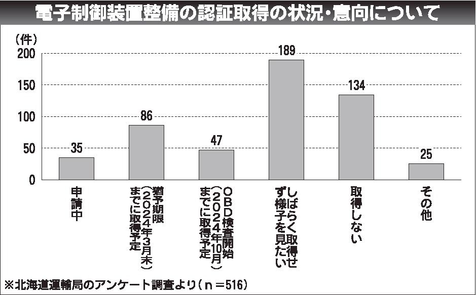 北海道運輸局は、電子制御装置整備の認証をまだ取得していない特定整備事業者(認証工場)を対象に行ったアンケート調査の結果を公表した。3月末に経過措置が終了する電子認証の取得について、63%の事業者が「取得しない」または「しばらく取得せず様子...