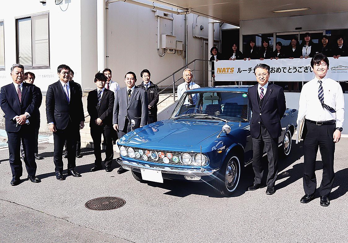NATS-Sの学生ら、レストアのルーチェで千葉マツダなど表敬訪問