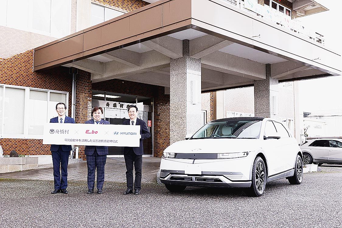 【富山】ヒョンデモビリティジャパン(趙源祥社長、横浜市西区)とヒョンデ車の整備を担う杉政貿易(杉政朋則社長、富山市)は舟橋村と「電気自動車(EV)を活用した災害連携協定」を締結した。災害時にヒョンデのカーシェアリングサービスを用いてEVを...