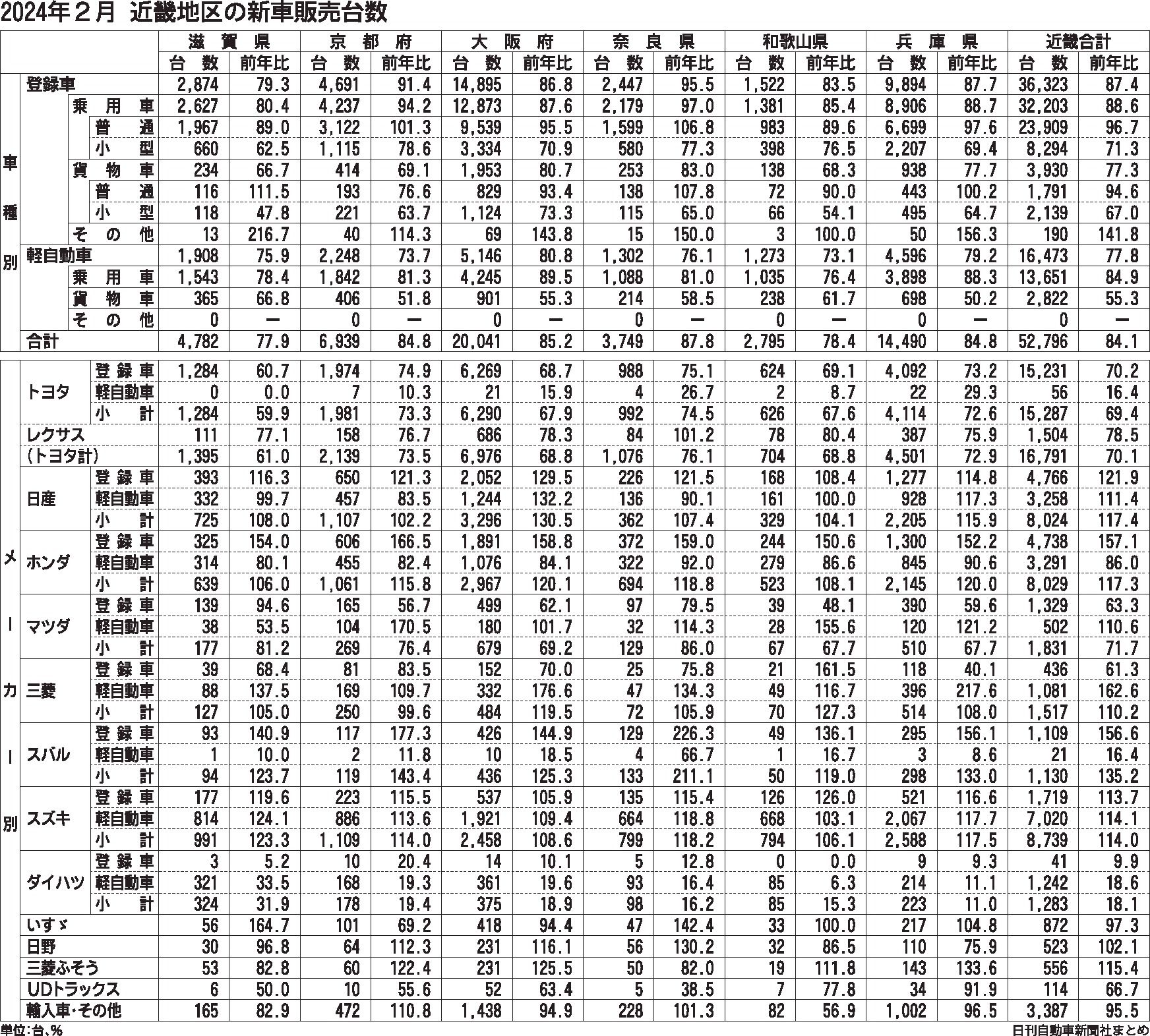 近畿2府4県2025年11月車検 3ヵ月ぶりに前年を下回る