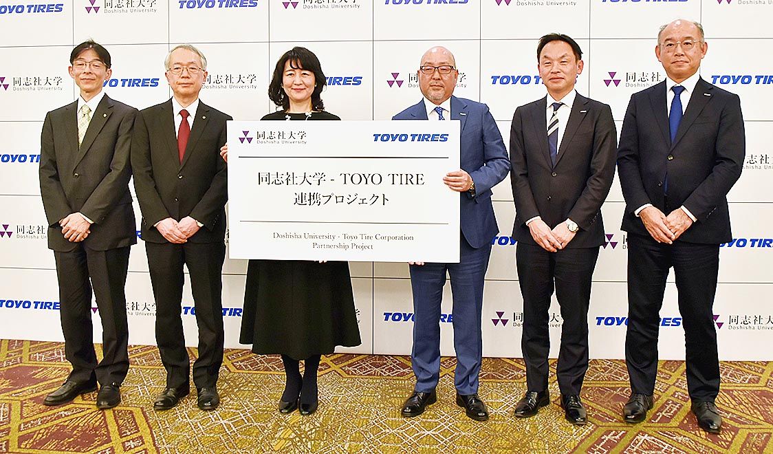 トーヨータイヤは8日、同志社大学と5年間の包括的連携協定を締結した。同社が1億円を拠出し、次世代タイヤ技術をはじめとする研究開発や人材育成・交流などの分野で協業する。 トーヨータイヤが学術機関と包括連携を結ぶのは初めて。「同志社―トーヨー...
